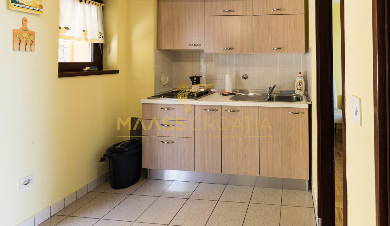 Na pierwszym piętrze znajduje się mieszkanie z 2 sypialniami, które mają dostęp do balkonów z pięknym widokiem na morze, Zadar i wyspę Ošljak. Przed mieszkaniem na pierwszym piętrze znajduje się przestronny taras z kominkiem.