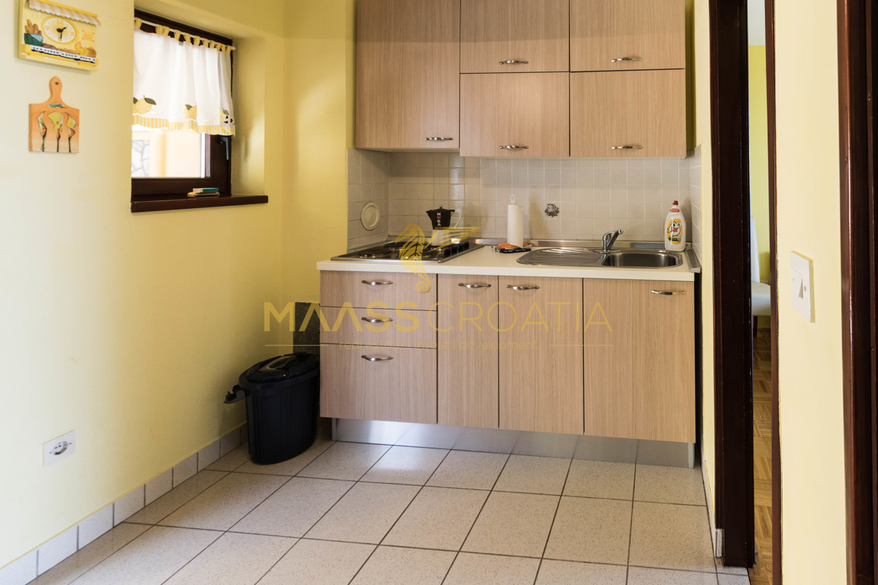 Na pierwszym piętrze znajduje się mieszkanie z 2 sypialniami, które mają dostęp do balkonów z pięknym widokiem na morze, Zadar i wyspę Ošljak. Przed mieszkaniem na pierwszym piętrze znajduje się przestronny taras z kominkiem.