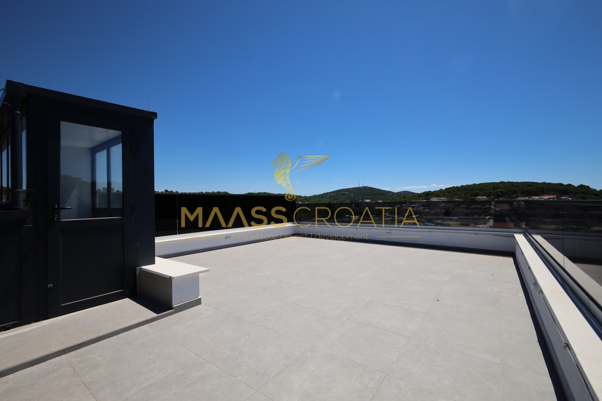 Na 2. piętrze domu znajduje się duży taras na dachu o powierzchni 24,50 m² z widokiem na morze.
