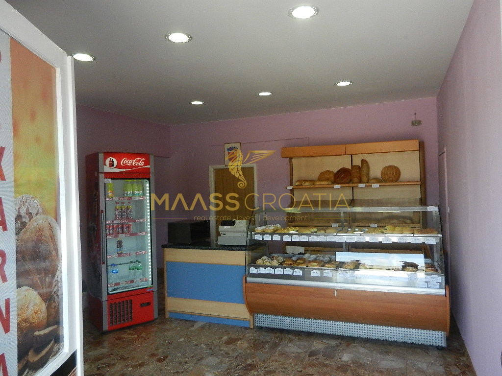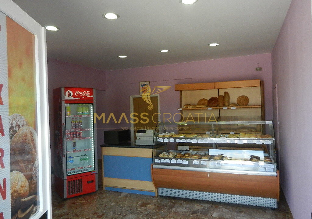 Na parterze znajduje się pięć lokali użytkowych o łącznej powierzchni 398,25 m2 z dwoma sklepami, piekarnią, salą sprzedaży i bufetem, a wszystko jest umeblowane i działa.