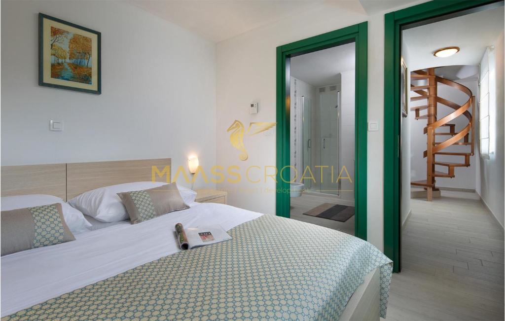 Duży taras na dachu z pięknym widokiem na morze! Mieszkanie z trzema sypialniami w Vodicach