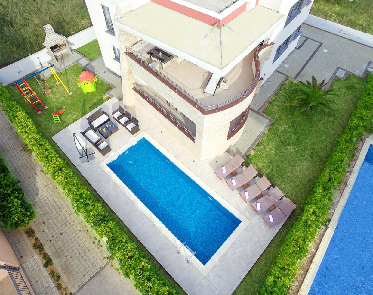 Ta nowoczesna willa o powierzchni 280 m2 znajduje się w szanowanej dzielnicy mieszkalnej i została zbudowana w 2014 roku.