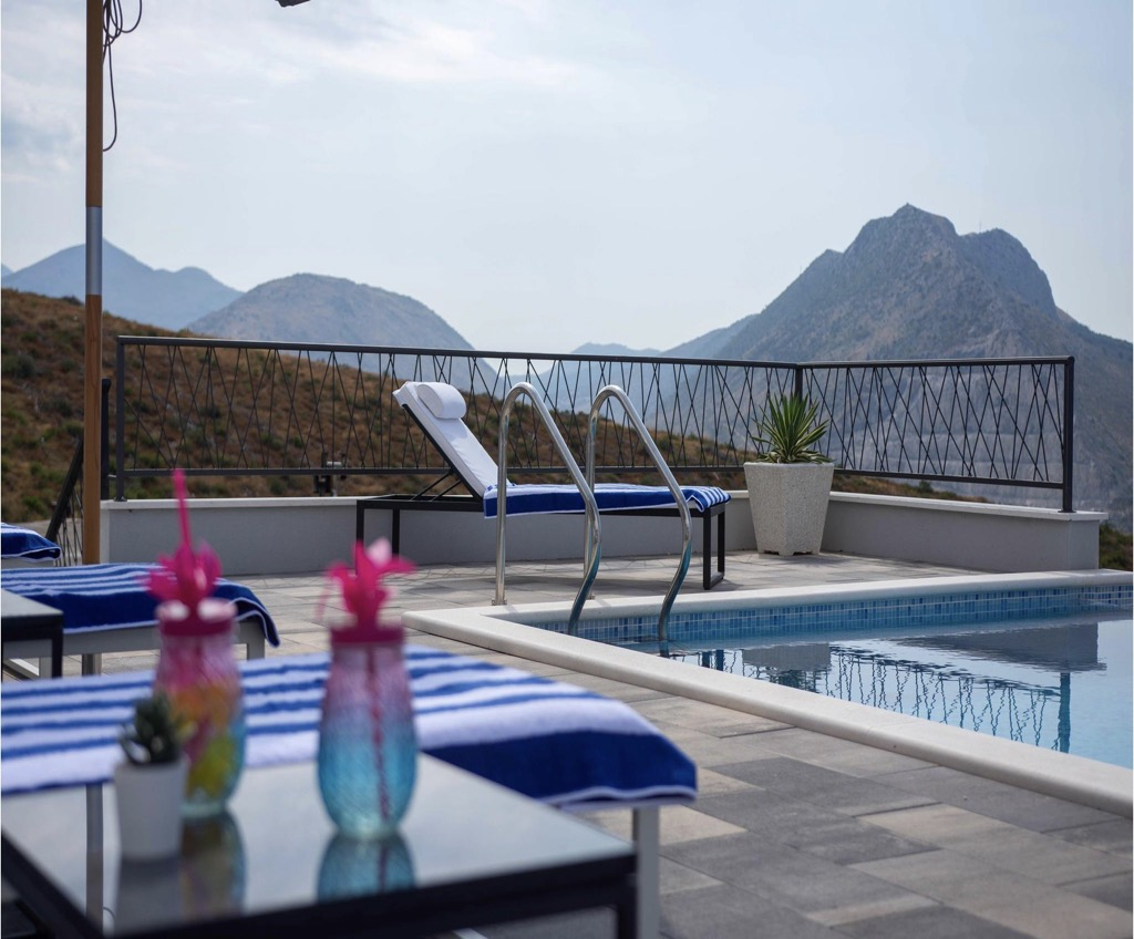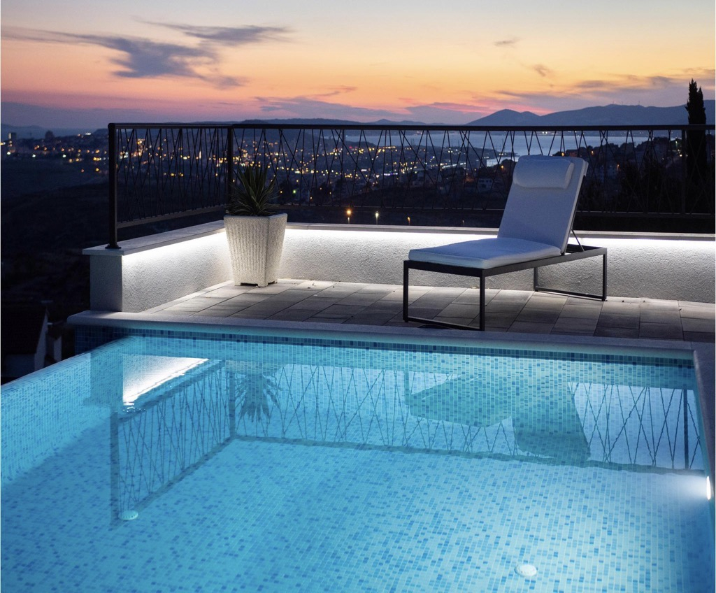 Oszałamiający, przestronny basen na tarasie przyciąga wzrok, ponieważ jest idealnie usytuowany, aby oglądać fantastyczne zachody słońca nad zatoką i poczuć się jak we własnej egzotycznej oazie!