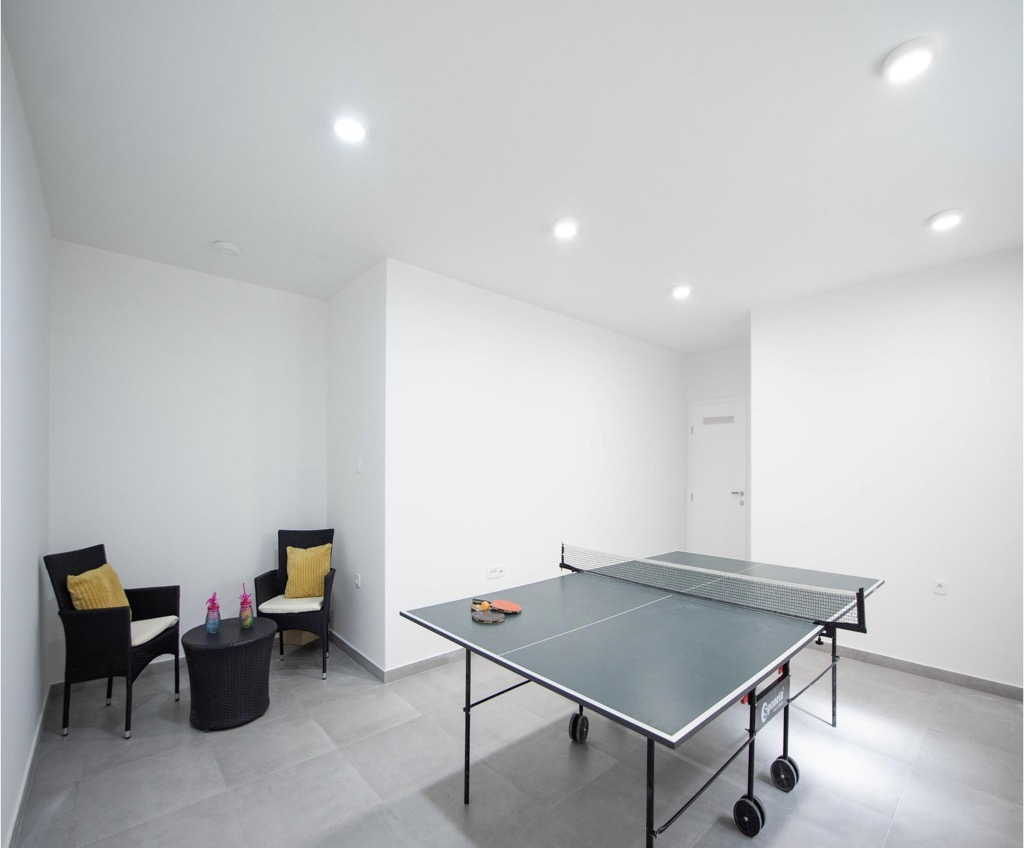 Z wbudowaną siłownią i pokojem gier, ten dom oferuje również niezwykle przestronny i funkcjonalny ogród z własnym placem zabaw dla dzieci.
