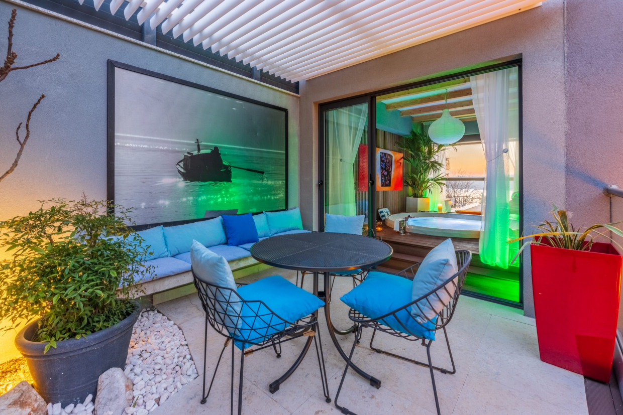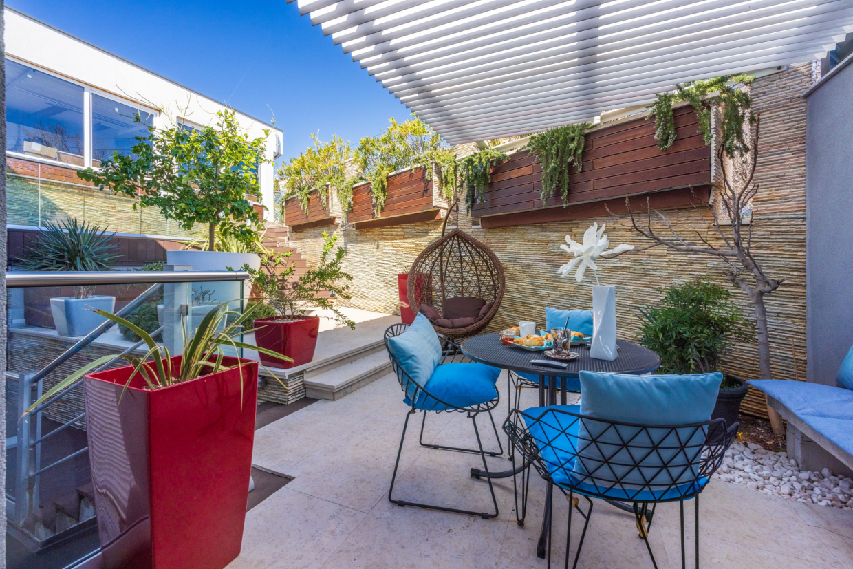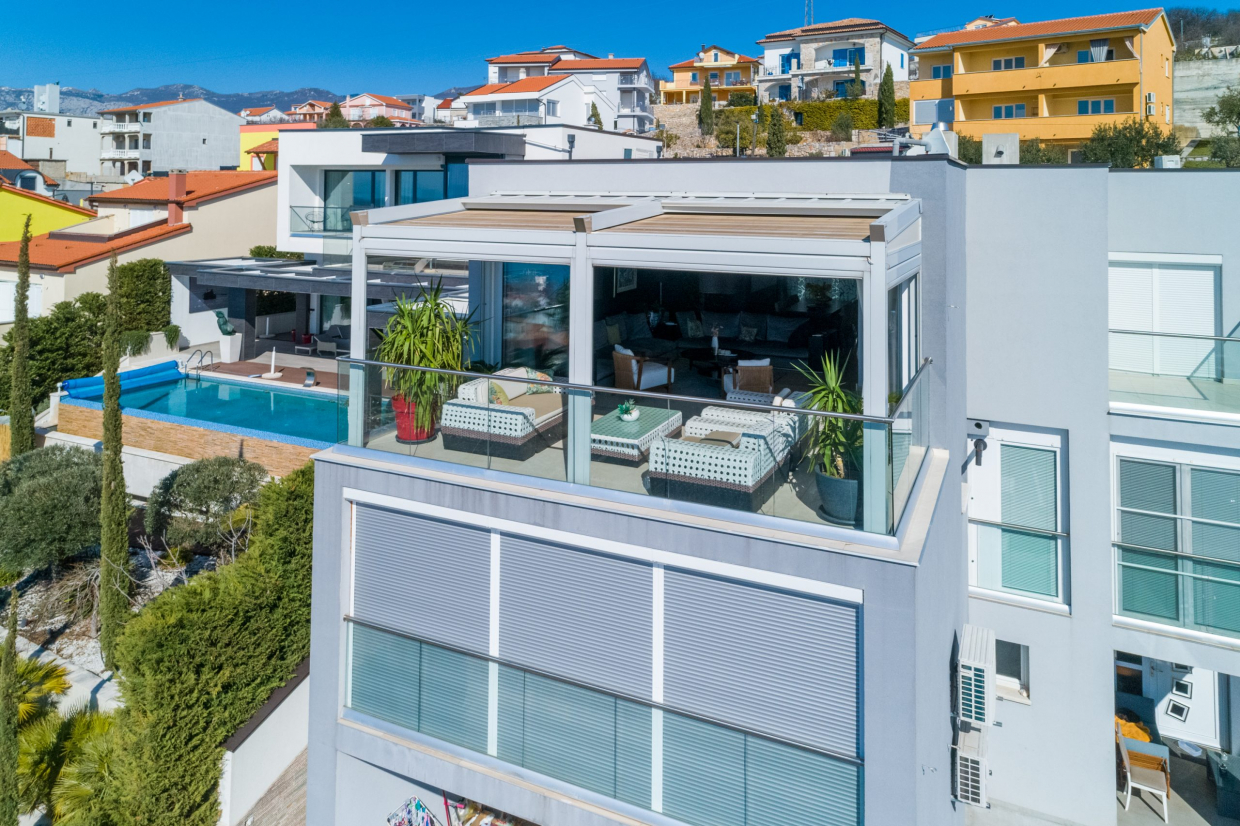 Na 2. piętrze znajdują się dwa oddzielne mieszkania na sprzedaż, każde z prywatnym tarasem na dachu i basenem....
