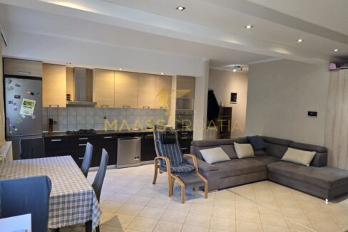 Mieszkanie ma dwie sypialnie, przestronny salon z jadalnią i kuchnią, łazienkę i zadaszony taras z dostępem do pięknie zagospodarowanego ogrodu o powierzchni 50 m².