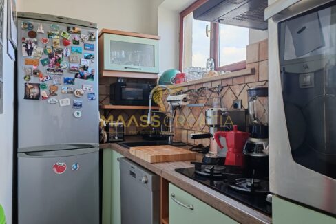 Składa się z dwóch sypialni, salonu z przylegającą jadalnią i kuchnią, łazienki i pomieszczenia gospodarczego.