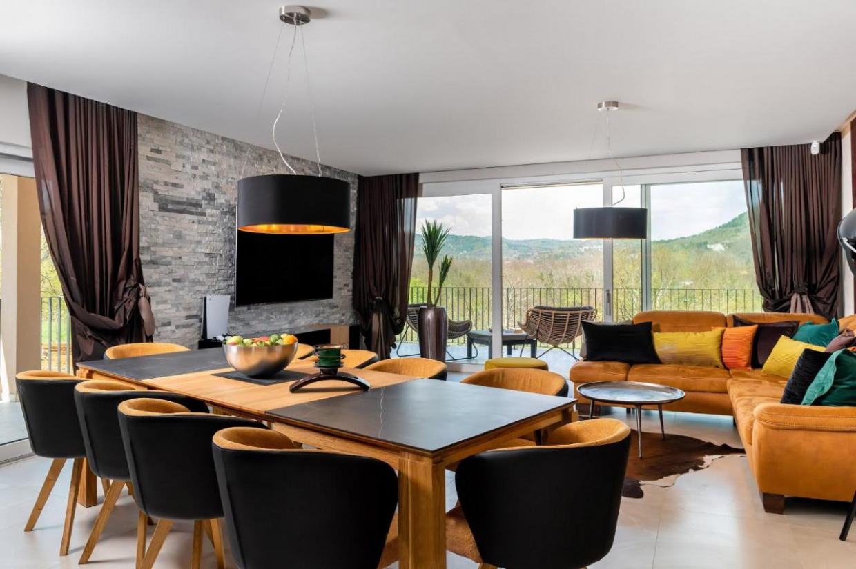Piękna kuchnia na świeżym powietrzu na wspaniałym tarasie z widokiem na dolinę jest idealna na wszystkie letnie spotkania, ponieważ można tu odpocząć i cieszyć się przyrodą oraz najbardziej zapierającymi dech w piersiach widokami, jakie to miejsce kiedykolwiek widziało!