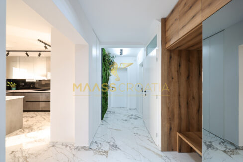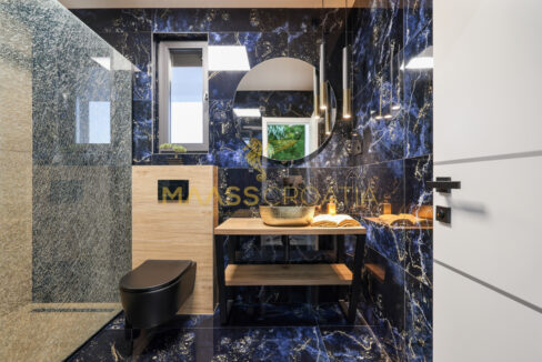 Na parterze znajduje się również sypialnia z łazienką, schowek, pomieszczenie gospodarcze i hol ze schodami na piętro, gdzie znajdują się trzy sypialnie z podwójnymi łóżkami i pięknie urządzonymi wnętrzami, każda z własną łazienką i balkonem.