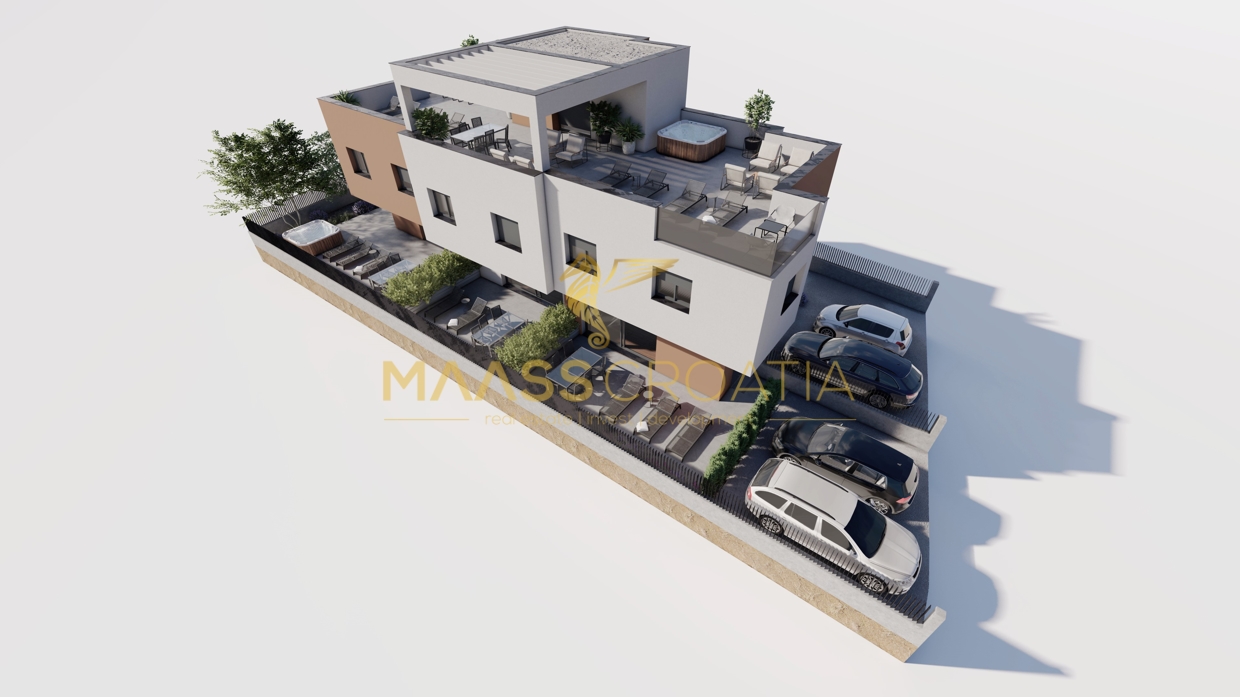 Nowy budynek z sześcioma jednostkami mieszkalnymi, widokiem na morze i ogrodem