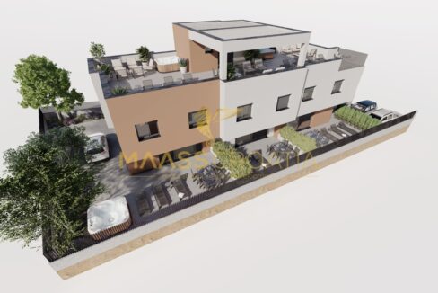 Nowy budynek z sześcioma jednostkami mieszkalnymi, widokiem na morze i ogrodem