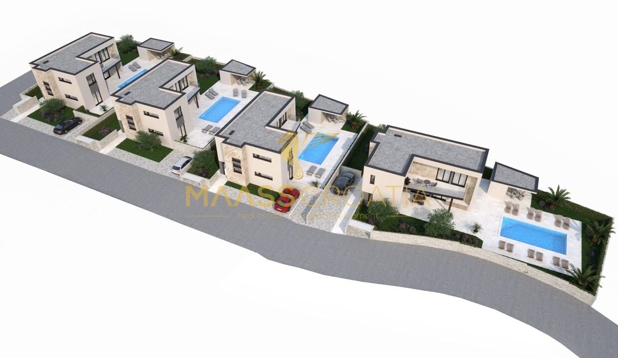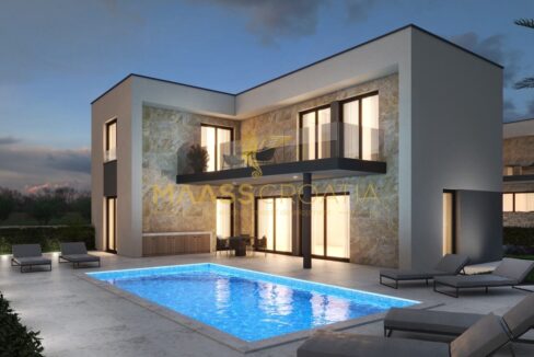 Nieruchomość jest ekskluzywnym projektem z przestronną działką o powierzchni 600 m², prywatnym parkingiem i basenem o wymiarach 8×4 metry.