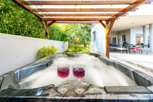 Na zewnątrz znajduje się basen o powierzchni 45 m2, miejsce do opalania i wanna z hydromasażem
