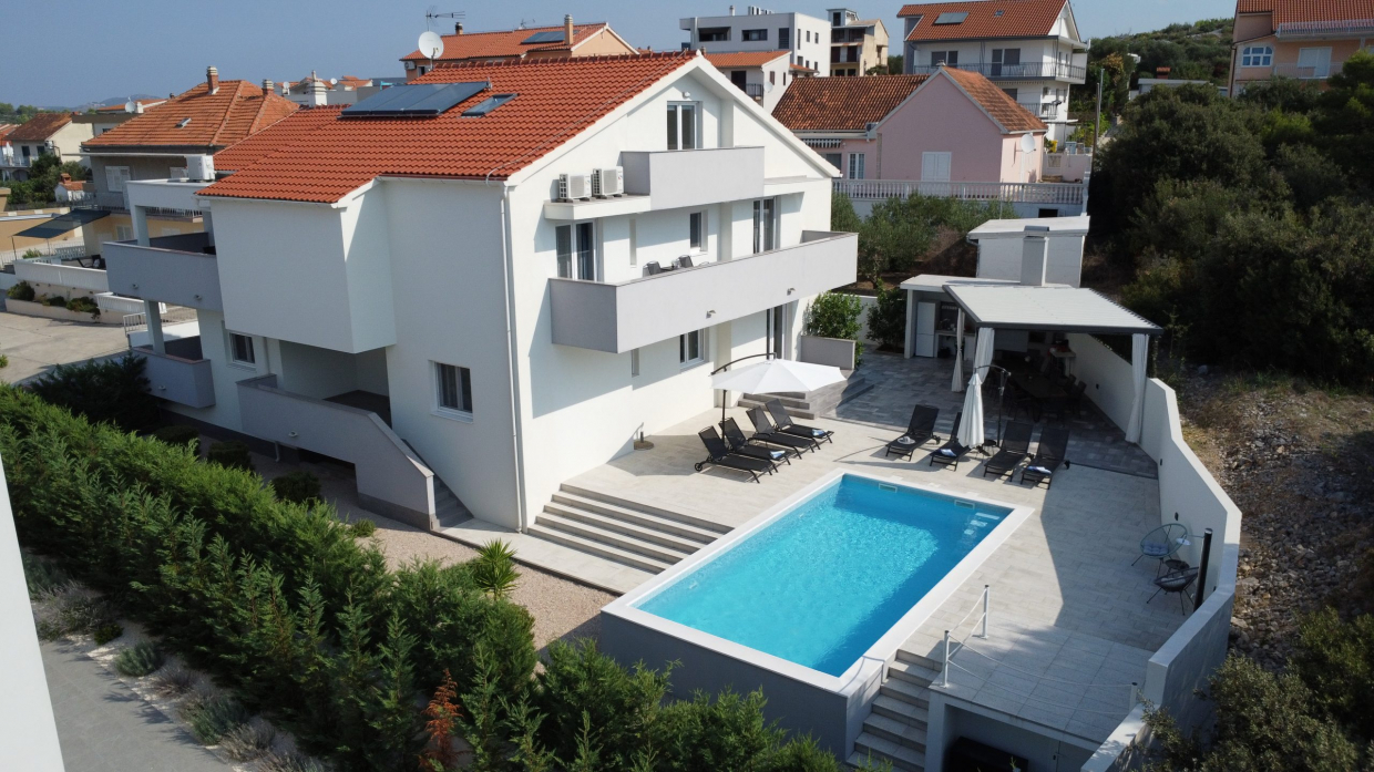 Nowoczesna willa z płaskim dachem, basenem i gustownym wyposażeniem