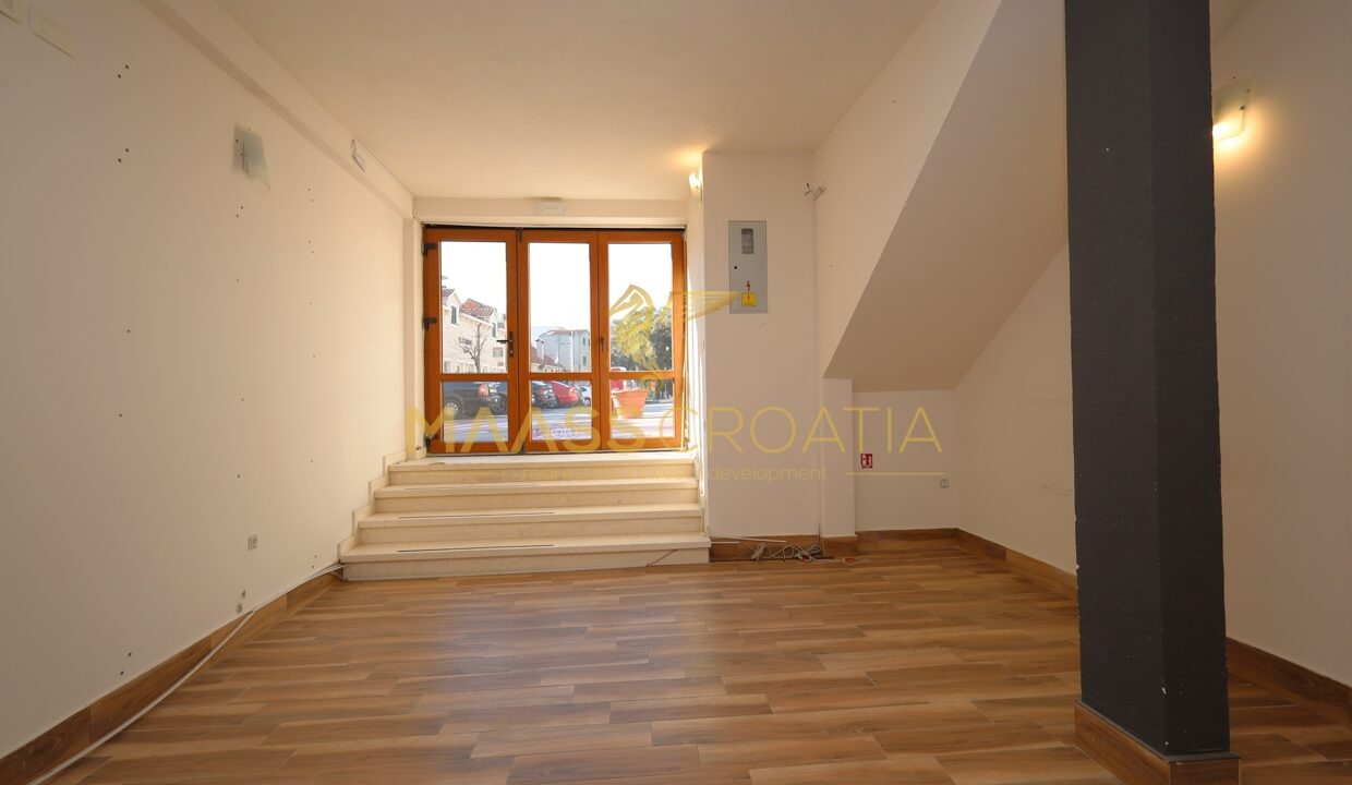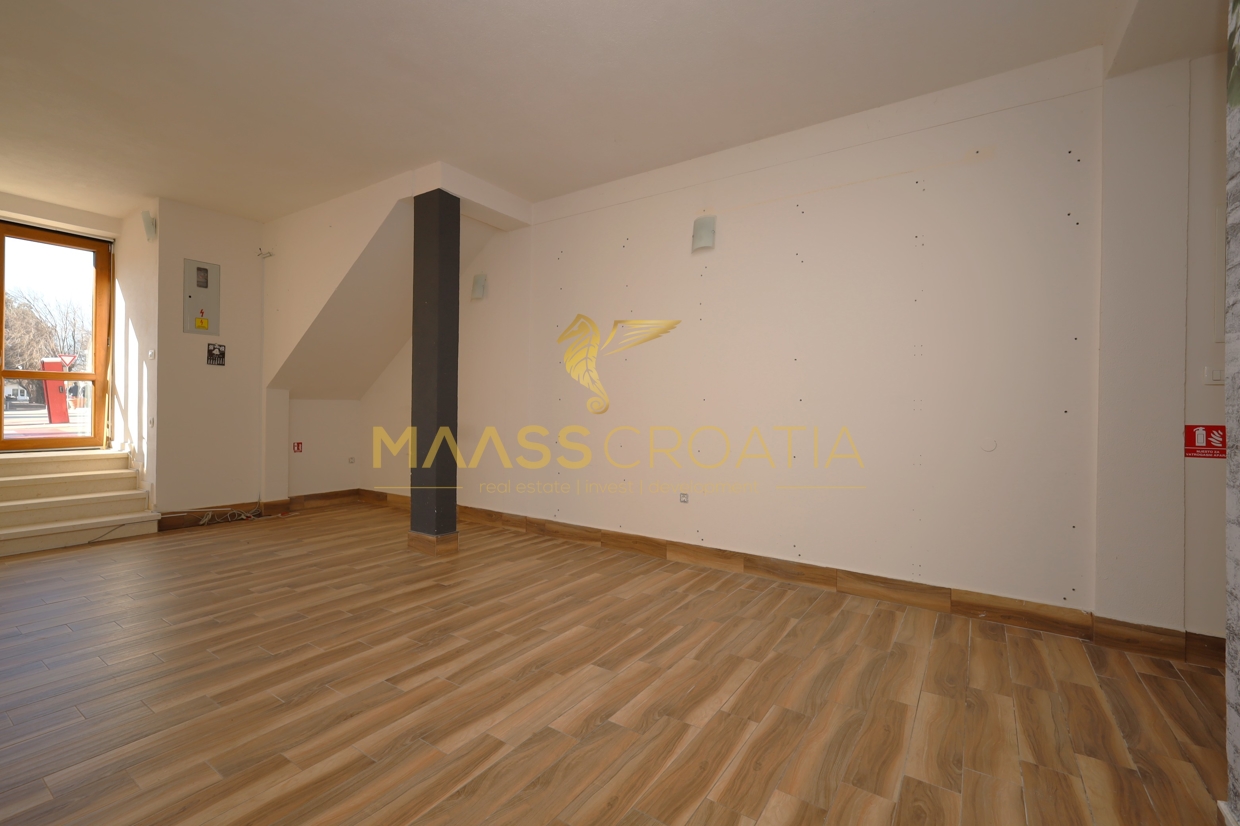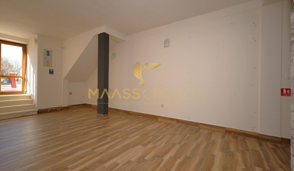 Na parterze znajduje się przestrzeń handlowa o powierzchni 46,6 m², natomiast trzykondygnacyjne mieszkanie o powierzchni 123,5 m² rozciąga się na 1. piętrze, 2. piętrze i poddaszu.