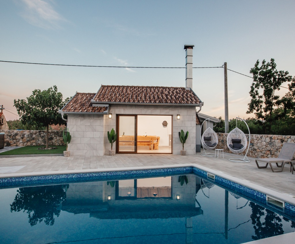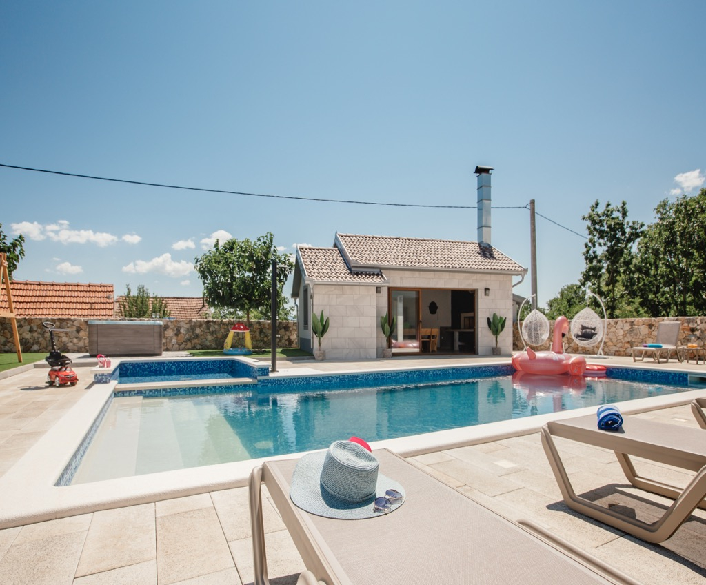 Oprócz tego już oszałamiającego domu, obok basenu znajduje się dodatkowy domek ogrodowy, którego można używać do zabawy w letnie wieczory i rozrywki.
