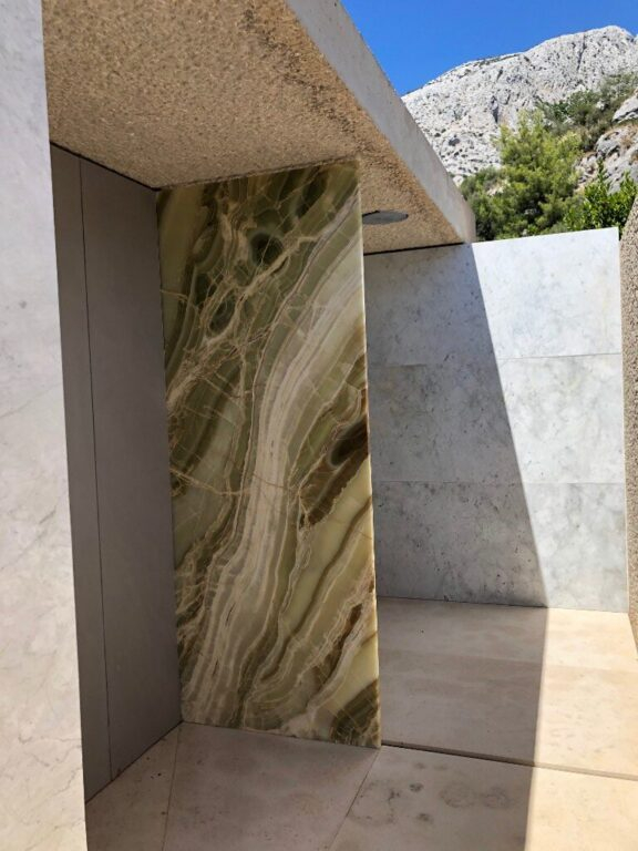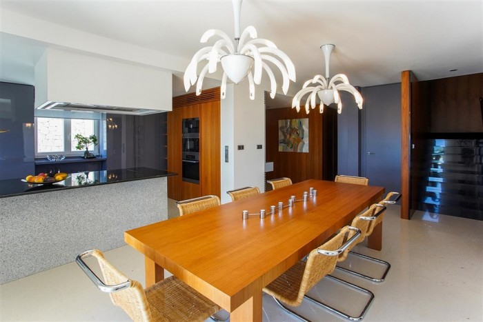 Ten dom o powierzchni 480 m2 znajduje się na działce o powierzchni 1720 m2. Zbudowana w całości z najlepszych i najtrwalszych materiałów, takich jak beton, kamień i marmur, geometrycznie ukształtowana i artystyczna nieruchomość ma w sumie 4 sypialnie i łazienki.
