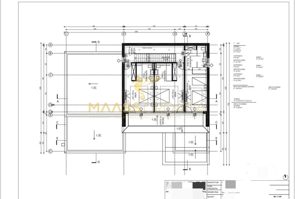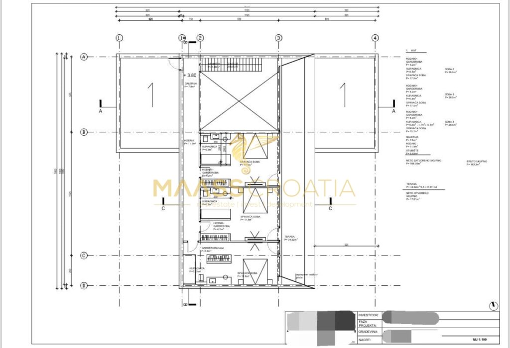 Całkowita powierzchnia domu wynosi 504,57 m2. Powierzchnia netto wynosi 404,47 m2. Powierzchnia działki wynosi 1,113 m2. Willa jest w pełni umeblowana.