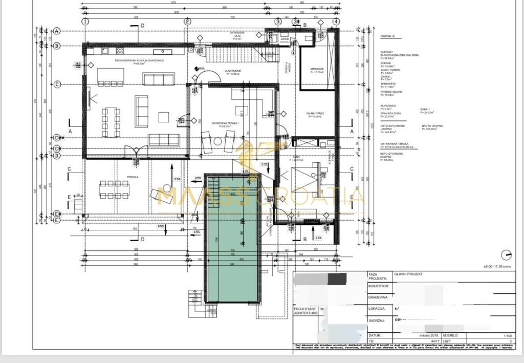 Willa posiada alarm podłączony do smartfona, system zdalnej aktywacji i dezaktywacji, kamery podłączone do smartfona, niezależne rejestratory itp. Dom posiada pływającą bramę wjazdową ze zdalnym sterowaniem, drzwi wejściowe z systemem kodowym, system nawadniania trawników, napełnianie basenu z własnej studni. Dom jest wykonany w całości ze zbrojonego betonu o dużych rozpiętościach, bez cegieł, z najwyższymi standardami przeciw trzęsieniom ziemi. Jest izolowany termicznie i hydroizolacyjnie ze wszystkich stron. Dach jest wyposażony w 28 cm paneli izolacyjnych XPS jesienią, a ściany w 15 cm styropianu grafitowego Rofix. Basen jest również izolowany ze wszystkich stron płytami izolacyjnymi XPS. Na elewacji nie ma rynien odprowadzających wodę z dachu, ponieważ są one ukryte w elewacji i kierowane do studni absorpcyjnej, dzięki czemu nadmiar wody nie stoi na posesji podczas deszczu, a dodatkowa lampa UV sterylizuje wodę w basenie w miarę możliwości, aby bakterie i wirusy nie mogły przetrwać. Połowa basenu jest zadaszona, co docenią osoby podatne na złośliwe choroby skóry. Można ją łatwo całkowicie zamknąć i korzystać z basenu zimą. Basen posiada klasyczne schody i płytkie, leniwe zejście w cieniu. Ponadto basen jest ogrzewany przez pompę ciepła i panele słoneczne na dachu, co zapewnia dodatkowy komfort w chłodniejsze dni. Basen jest izolowany termicznie ze wszystkich stron za pomocą paneli izolacyjnych XPS, które utrzymują wysoką temperaturę w nocy. Ponadto basen posiada koc termiczny, który utrzymuje temperaturę w nocy i umożliwia korzystanie z basenu zimą.