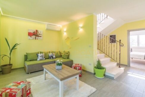 Składa się z parteru i piętra – na parterze znajduje się przestronny salon, kuchnia, jadalnia, sypialnia z łazienką i toaleta dla gości. Na piętrze znajdują się trzy sypialnie, każda z własną łazienką i tarasem z widokiem na morze.