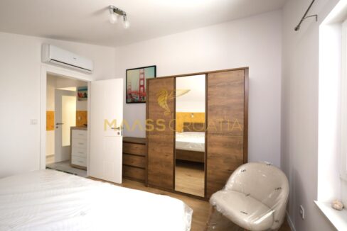 Wewnętrzne schody prowadzą na pierwsze piętro, gdzie znajduje się drugie mieszkanie o łącznej powierzchni użytkowej 96,76 m², składające się z wewnętrznej klatki schodowej, przedpokoju, dwóch sypialni, dwóch łazienek, kuchni z jadalnią i przytulnego salonu z wyjściem na duży, zadaszony taras.