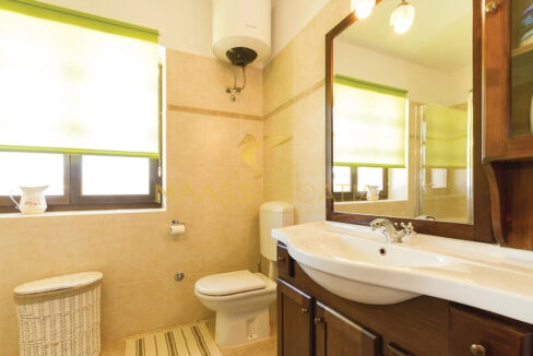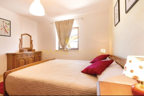 Dom jest w pełni umeblowany i wyposażony i ma trzy sypialnie – dwie z nich z łazienkami – a także dodatkową łazienkę obok trzeciej sypialni oraz przestronny salon z kuchnią i autentycznym kamiennym kominkiem.