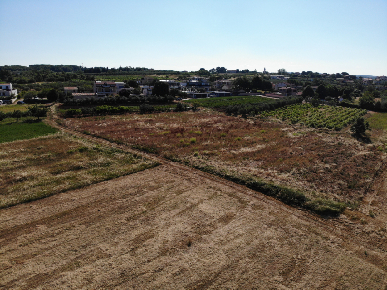 Działka jest lekko nachylona w kierunku morza, co gwarantuje piękny widok, a infrastruktura znajduje się tuż przy granicy / wejściu na działkę. Odległość do morza wynosi 6,5 km, Poreč 13 km, Rovinj 45 km i lotnisko Pula 60 km.działka budowlana- 1,019 m2 – całkowita powierzchnia