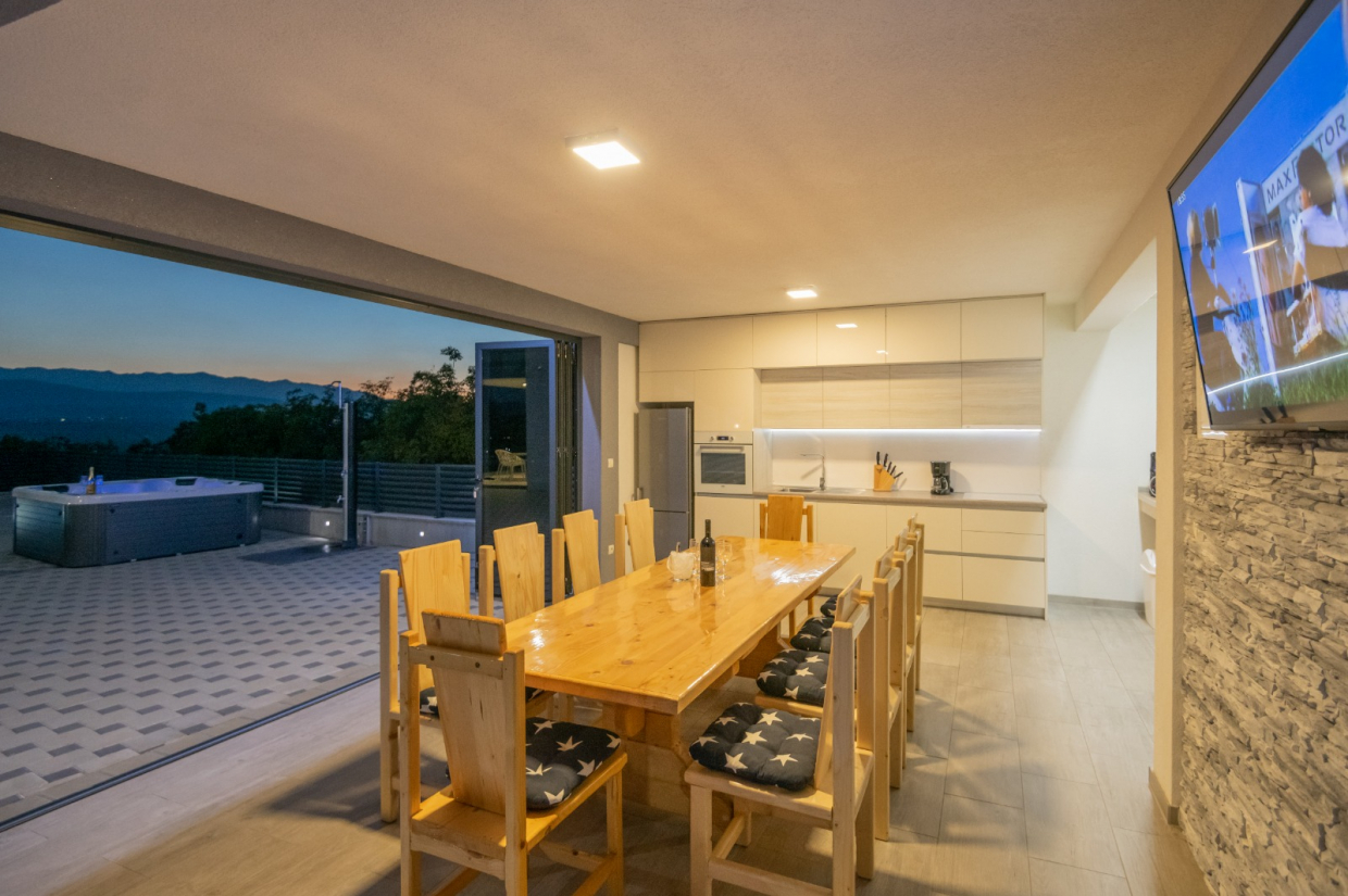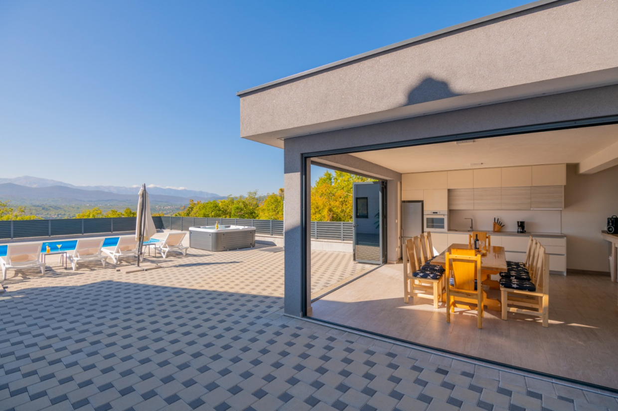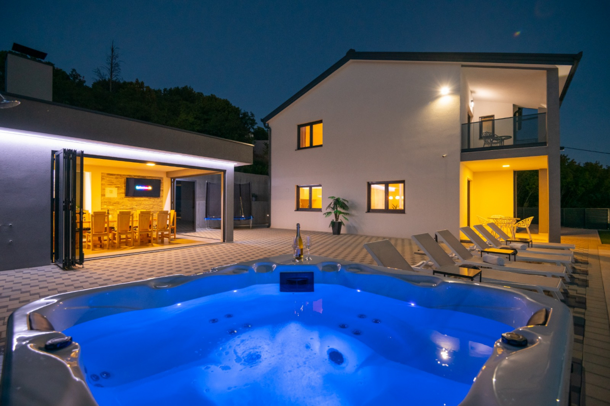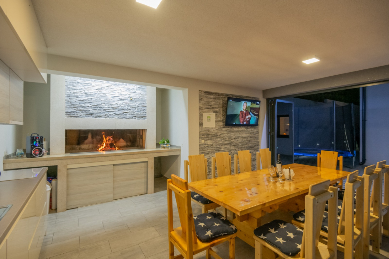 Na tarasie można cieszyć się jacuzzi i posiłkami na świeżym powietrzu z kuchnią na świeżym powietrzu, idealną na wszystkie letnie spotkania z rodziną i przyjaciółmi!