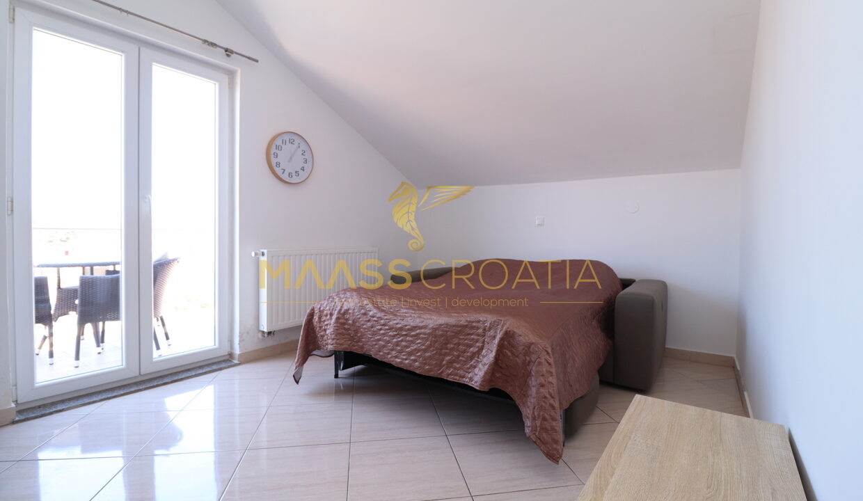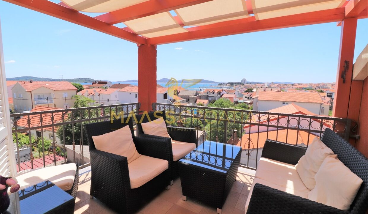 Duży taras na dachu z pięknym widokiem na morze! Mieszkanie z trzema sypialniami w Vodicach