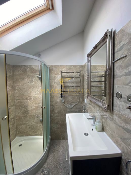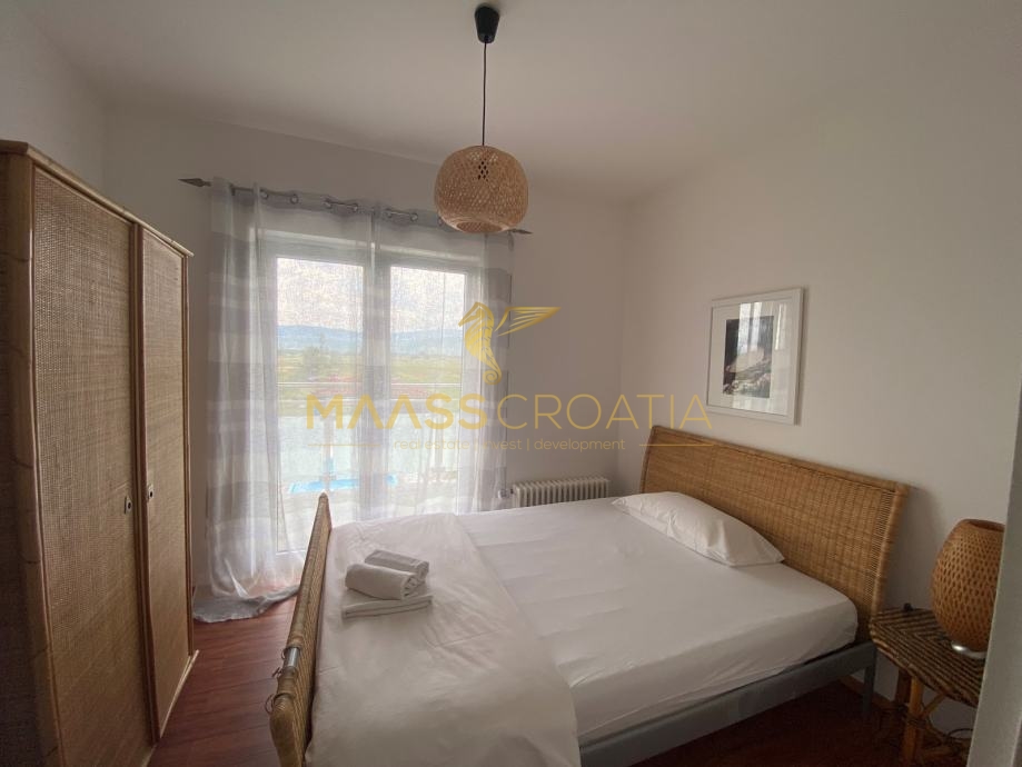 Dom posiada szopę ogrodową, popularną w Chorwacji kuchnię na świeżym powietrzu, 7 miejsc parkingowych i basen.
