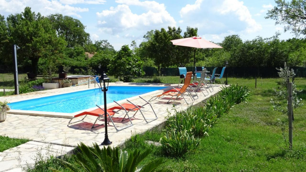 Odnowiony, typowy istryjski dom z basenem bez krawędzi i widokiem na zieleń