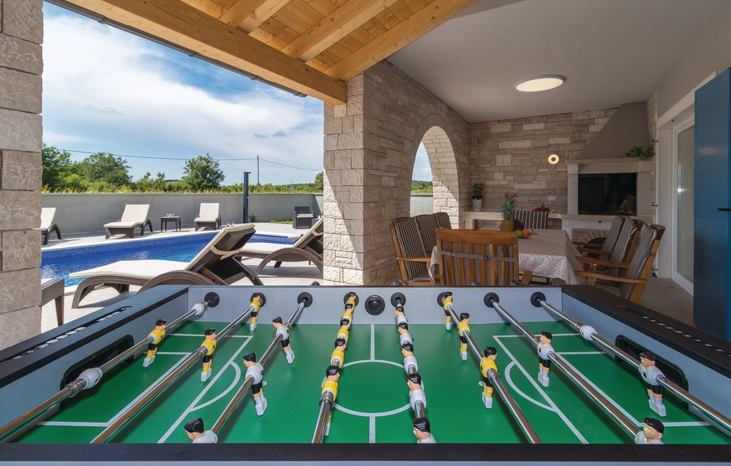 Ta willa o powierzchni 170 m2 z 2 piętrami, 4 sypialniami i 5 łazienkami znajduje się na działce o łącznej powierzchni 800 m2 w regionie Pula.