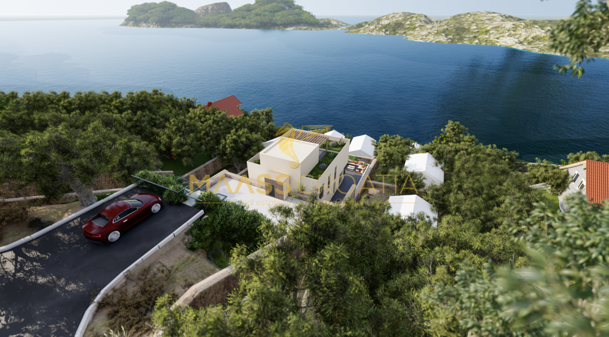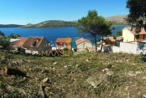 Dostęp do prostokątnej działki odbywa się główną drogą, teren jest na zboczu i oferuje niezakłócony widok na morze.