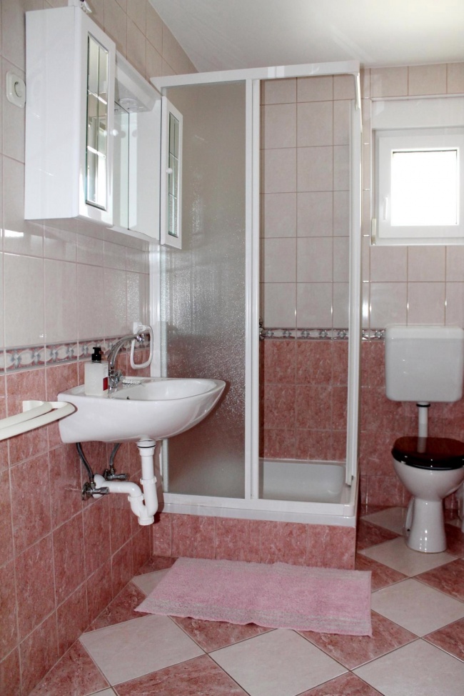 Całkowita powierzchnia użytkowa około 450 m² jest rozłożona na trzech piętrach mieszkalnych plus piwnica z podziemnym parkingiem. Do sześciu jednostek mieszkalnych (po dwie na każdym piętrze) można dotrzeć wspólną klatką schodową, dzięki czemu układ każdego piętra jest identyczny! Ze wszystkich tarasów i balkonów, z których większość wychodzi na południowy zachód, roztacza się widok na morze! Jak wszędzie na wyspie Vir, zaopatrzenie w wodę zapewnia cysterna, która w tym obiekcie mieści imponujące 30 metrów sześciennych.