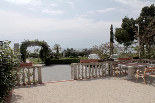 Zadbany dom z 6 oddzielnymi jednostkami mieszkalnymi jest zbudowany w stylu śródziemnomorskim i znajduje się bezpośrednio nad morzem (ok. 20 metrów) w południowej części wyspy Vir.
